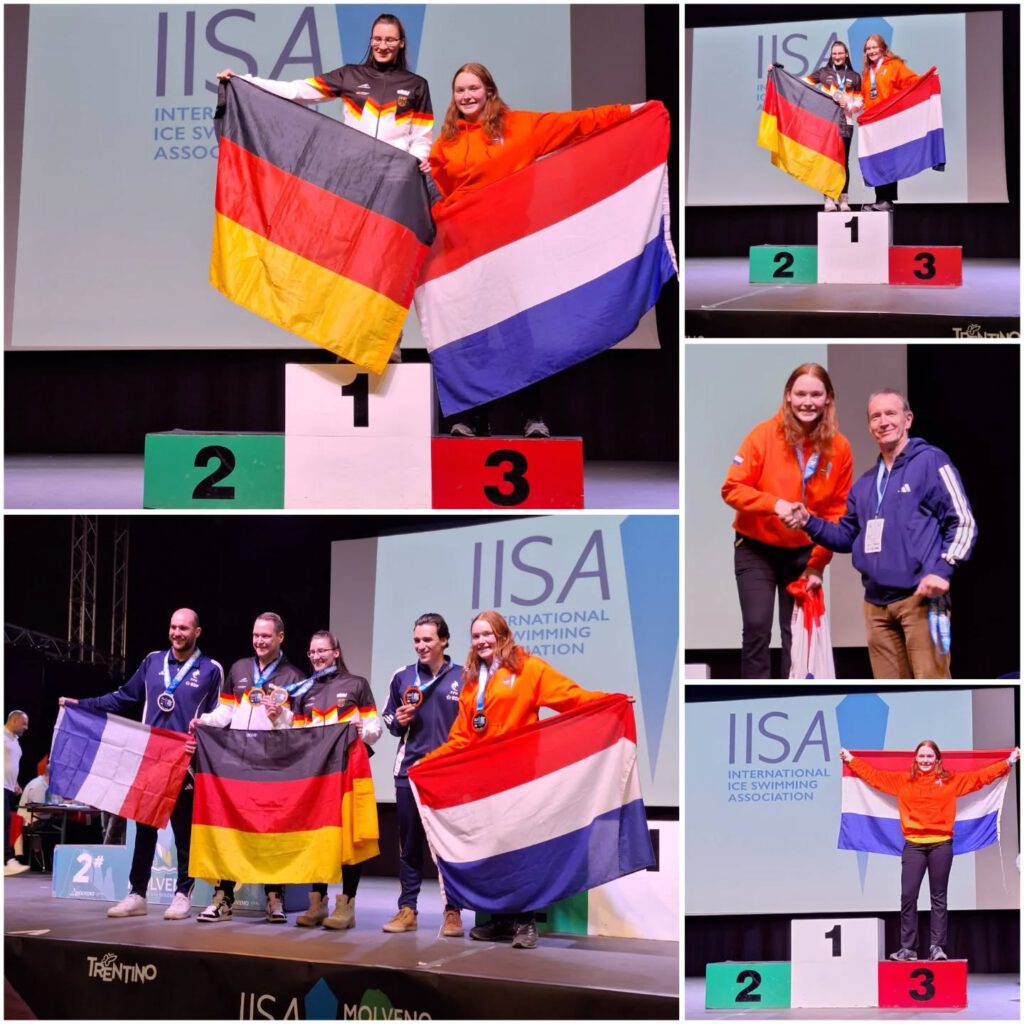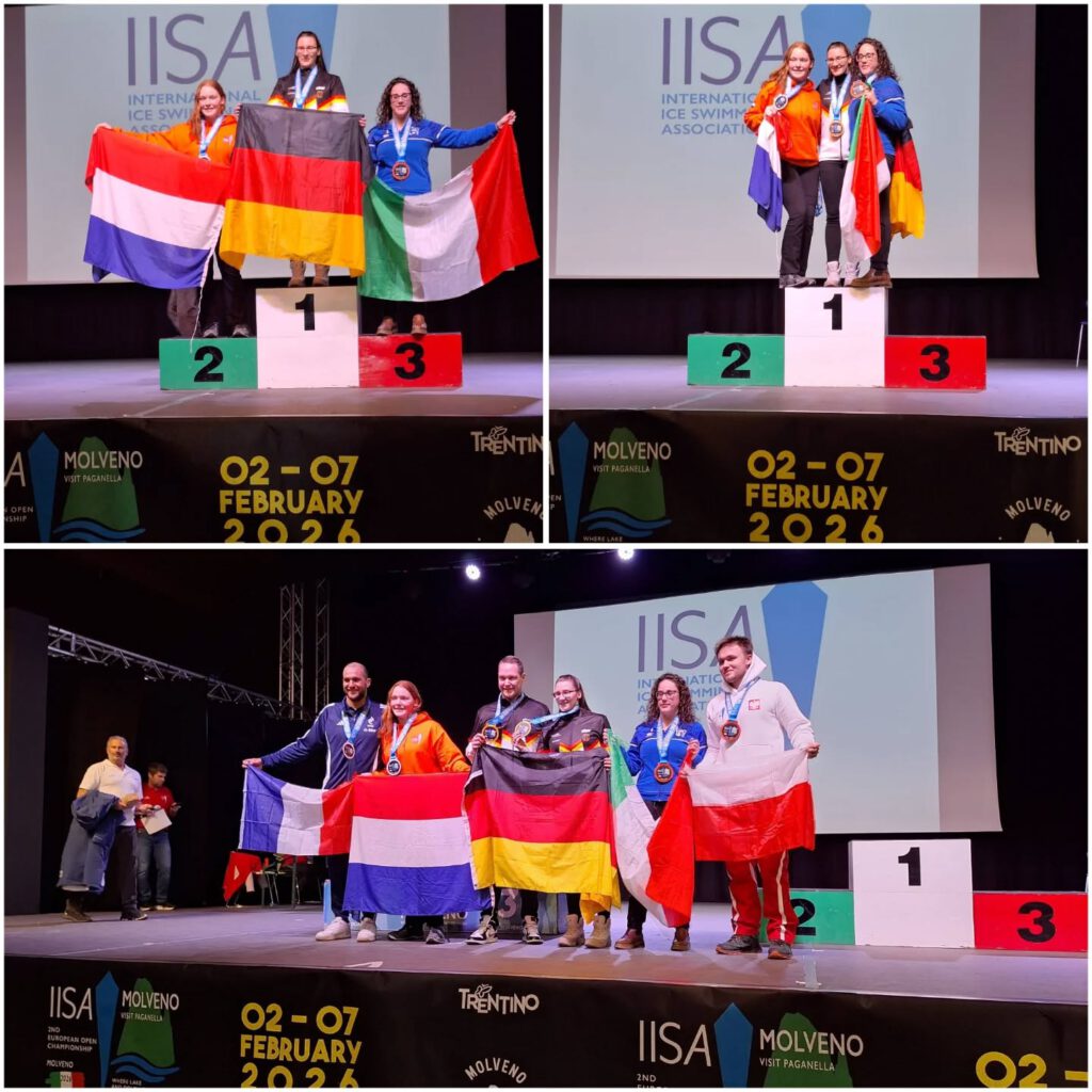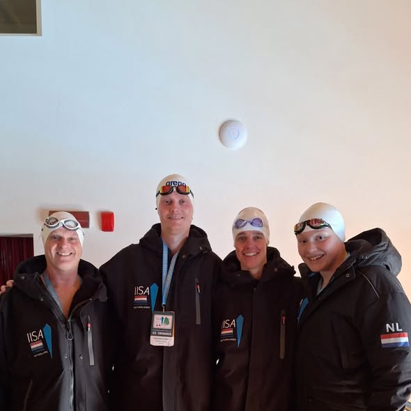 Het Europees kampioenschap ijszwemmen in Molveno, Italië, was weer een mooie en uitdagende ervaring voor Team IISA Nederland. De watertemperatuur lag tussen de 1,4 en 2,8 graden. Zondagavond begon het te sneeuwen en het toernooi startte dus in de sneeuw. We hebben alle weertypes gehad: ook regen en zon. Team NL werd vertegenwoordigd door 24 zwemmers.
